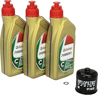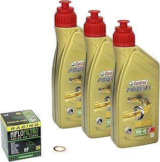 Castrol Power1 (10W-40) Ölwechsel-Set Suzuki SV 650 S, Bj. 99-10 - Motoröl, HiFlo Racing Ölfilter und Dichtring