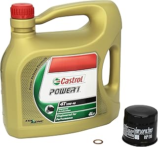Castrol Power1 (10W-40) Ölwechsel-Set Suzuki DR 600 S, Bj. 85-89 - Motoröl, HiFlo Ölfilter und Dichtring