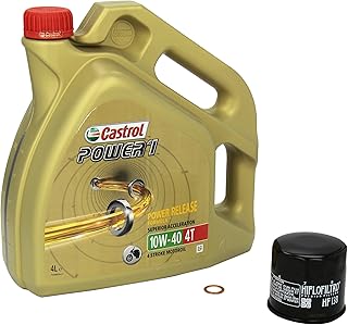 Castrol Power1 (10W-40) Ölwechsel-Set Suzuki Burgman 150 (UH 150), Bj. 04-06 - Motoröl, HiFlo Ölfilter und Dichtring