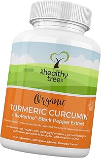 Bio Kurkuma Kapseln von TheHealthyTree Company - Hochdosiert mit BioPerin Schwarzer Pfeffer Extrakt - Vegane Kurkuma Tabletten mit Curcumin - 120 x 750 mg pro Kapsel