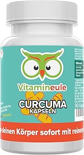 Curcuma Kapseln hochdosiert - 500mg - Qualität aus Deutschland - Curcuma Extrakt ohne Zusatzstoffe - Effektive Kurkuma Kapseln statt große Tabletten - reines Curcuma Pulver mit Curcumin - Vitamineule®