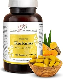 Kurkuma + Schwarzer Pfeffer Tabletten à 1100mg, 185 Tabletten (Curcuma, Curcumin+Piperin), Premium Qualität, Hergestellt in Österreich, Tabletten statt Kapseln, Vegan
