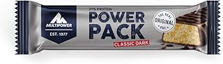 Multipower Power Pack Xxl Classic Dark 30% Protein. Serving Size: 1 g. 238 Cal. 44% 26g Carbs. 26% 6.7g Fat. 30% 18g Protein. Track macros, calories, and more with MyFitnessPal. Join for free! Daily Goals How does this food fit into your daily goals? Calorie Goal 1762 Cal. 238/2000Cal left. Fitness Goals: This humble classic protein bar provides you with 27% high-quality protein and carbohydrates. With its delicious banana flavour, this bar makes for a healthy snack between meals or after an intensive training session. Available in three different flavours: Classic Milk, Classic Dark and Classic White. Chocolate-coated protein bars.