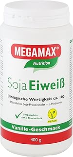 MEGAMAX Soja Eiweiß + Taurin + L-Methionin Vanille 400 g Glutenfrei | Sojaeiweiß-Isolat Low Carb | pflanzliches Eiweiss, Laktosefrei, Aspartamfrei | Veganes Protein für Muskelaufbau u. Muskelerhalt
