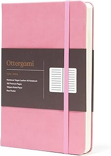 Notizbuch A5 Liniert| Luxuriöses-Veganes-Leder Notizbuch/Tagebuch | 150 g/m² Papier | The Pro by Ottergami (Rosa)