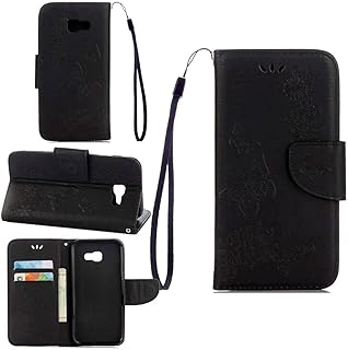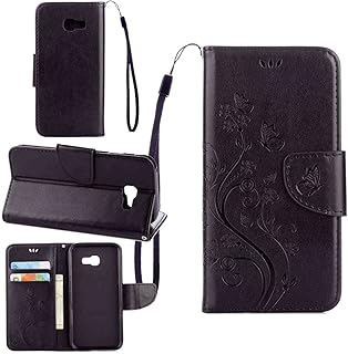 pinlu Schutzhülle Für Samsung Galaxy A5 (2017 Version, 5.2 Zoll) Handyhülle Hohe Qualität PU Ledertasche Brieftasche Mit Stand Function Innenschlitzen Design Schmetterling Schwarz