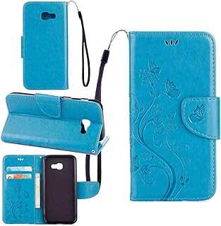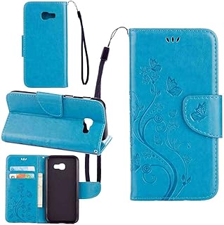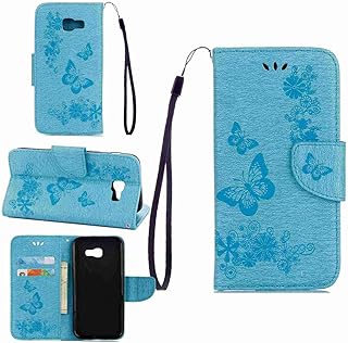pinlu Schutzhülle Für Samsung Galaxy A5 (2017 Version, 5.2 Zoll) Handyhülle Hohe Qualität PU Ledertasche Brieftasche Mit Stand Function Innenschlitzen Design Schmetterling Blau