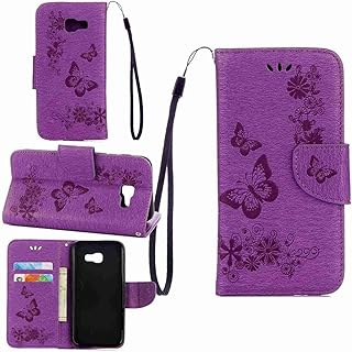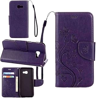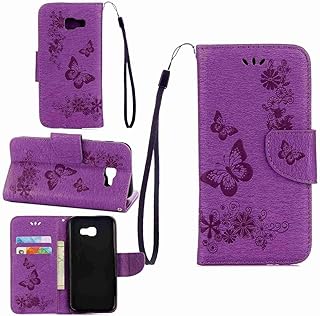 pinlu Schutzhülle Für Samsung Galaxy A5 (2017 Version, 5.2 Zoll) Handyhülle Hohe Qualität PU Ledertasche Brieftasche Mit Stand Function Innenschlitzen Design Schmetterling Lila