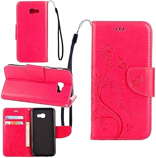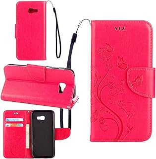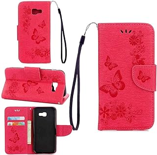 pinlu Schutzhülle Für Samsung Galaxy A5 (2017 Version, 5.2 Zoll) Handyhülle Hohe Qualität PU Ledertasche Brieftasche Mit Stand Function Innenschlitzen Design Groß Schmetterling Rose Red