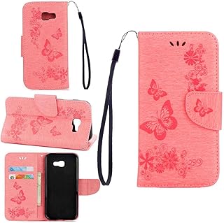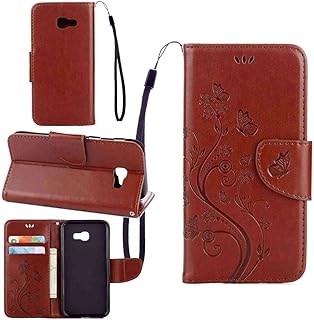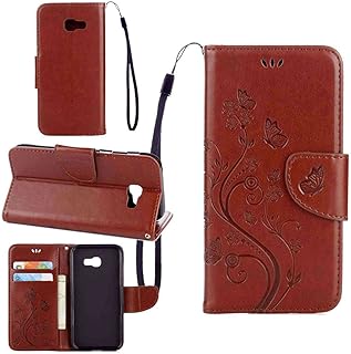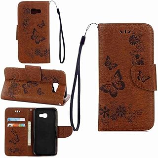 pinlu Schutzhülle Für Samsung Galaxy A5 (2017 Version, 5.2 Zoll) Handyhülle Hohe Qualität PU Ledertasche Brieftasche Mit Stand Function Innenschlitzen Design Schmetterling Braun