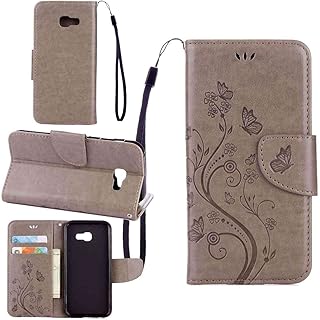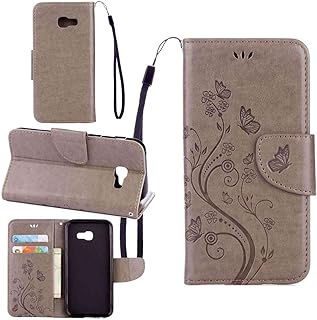 pinlu Schutzhülle Für Samsung Galaxy A5 (2017 Version, 5.2 Zoll) Handyhülle Hohe Qualität PU Ledertasche Brieftasche Mit Stand Function Innenschlitzen Design Schmetterling Grau