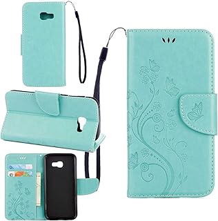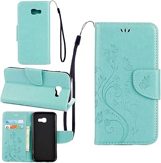 pinlu Schutzhülle Für Samsung Galaxy A5 (2017 Version, 5.2 Zoll) Handyhülle Hohe Qualität PU Ledertasche Brieftasche Mit Stand Function Innenschlitzen Design Schmetterling Grün