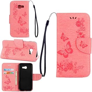 pinlu Schutzhülle Für Samsung Galaxy A5 (2017 Version, 5.2 Zoll) Handyhülle Hohe Qualität PU Ledertasche Brieftasche Mit Stand Function Innenschlitzen Design Groß Schmetterling Rosa