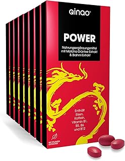Qinao® POWER* 1-Monats-Packung 4 x 7 POWER Dragees | Nahrungsergänzungsmittel mit Matcha Grüntee Extrakt, Brahmi Extrakt, B-Vitaminen & Eisen [BRAINFOOD - Made in Germany]