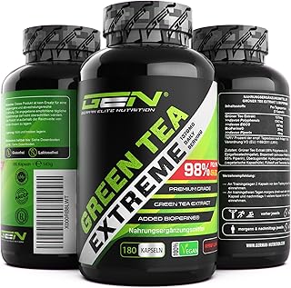 Green Tea Extreme - 180 Kapseln - 1370 mg Grüner Tee Extrakt pro Tagesdosis - 95% Polyphenole & 45% EGCG & Piperin - Laborgeprüfter Grüntee - Hochdosiert - Vegan - German Elite Nutrition