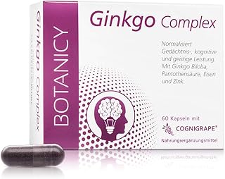 GINKGO COMPLEX mit Cognigrape, hochwertiger Ginkgo-Biloba-Extrakt, unterstützt Durchblutung, Sehen und Hören, für Blutdruck und Gefäßgesundheit (60 Kapseln, Monatspack)