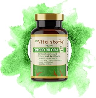 HM Vitalstoffe Ginkgo Biloba - 90 Kapseln - Hochdosiertes Ginkgo Biloba Extrakt - Gedächtniskapseln - Mit Flavonglykoside und Ginkgolid-Terpenlactone - Vegan - Deutsche Marke