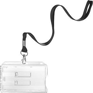 Chakil Ausweishülle Schutzhülle vertikal mit Band Schlüsselband Lanyard aus geflochtenem Polyester mit für Karten, für Ausweise Messen Kreditkarten Dienstausweise EC Karte Bankkarten Gesundheitskarten