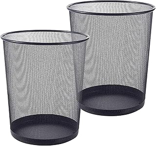 Tosnail 2 Stück Papierkorb Metall, großer Papiereimer fürs Büro, Runder Mülleimer, Draht, Mesh, Ø 23*27cm, Schwarz