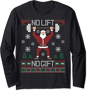 No Lift No Gift Ugly Christmas Sweater Santa Claus Gym Langarmshirt