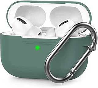 AHASTYLE Silikon Hülle für AirPods Pro Schutzhülle und Haut Case für AirPods Pro [Front-LED Sichtbar] [Kabelloses Laden] Kompatibel mit AirPods Pro 2019 (Mit Karabiner, Kieferngrün)