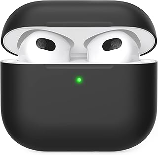 AHASTYLE AirPods 3 Hülle Silikon Schutzhülle und Haut Case für AirPods 3 [Front-LED Sichtbar] [Kabelloses Laden] Kompatibel mit AirPods 3 2021 (Ohne Karabiner, Schwarz)