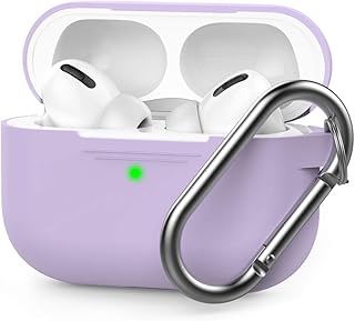 AHASTYLE Silikon Hülle für AirPods Pro Schutzhülle und Haut Case für AirPods Pro [Front-LED Sichtbar] [Kabelloses Laden] Kompatibel mit AirPods Pro 2019 (Mit Karabiner, Lavendel)