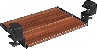 FIX&EASY Tastaturauszug klemmbar mit Tastaturablage 390X300mm Zwetschge Dekor, Tischklemmen höhenverstellbar schwarz, Schienen schwarz 300mm, Auszug für Tastatur Maus Keyboard und Laptop Ablage