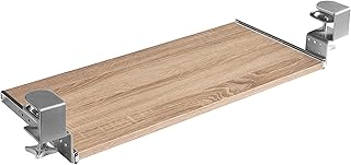 FIX&EASY Tastaturauszug klemmbar mit Tastaturablage 600X400mm sonoma eiche Dekor, Tischklemmen höhenverstellbar silber, Schienen verzinkt 400mm, Auszug für Tastatur Maus Keyboard und Laptop Ablage