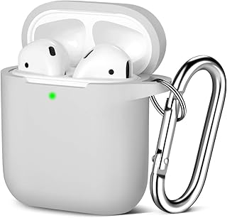 Maledan AirPods Hülle Silikon AirPods Case Kompatibel mit Apple Airpods 2 & 1 Generation, kompletter Schutz AirPods Schutzhülle (Front LED Sichtbar) (Kabelloses Laden) mit karabiner, Hellgrau