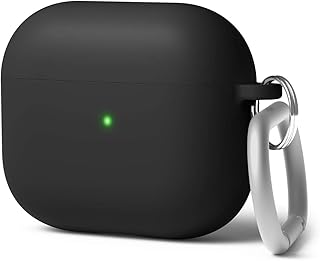 elago Liquid Hybrid Hülle mit Karabiner Kompatibel mit AirPods 3 Case Cover - Dreischichtiger Strukturschutz, Voller Schutz, LED Sichtbar, Hochwertiges Silikon Schutzhülle (Schwarz)