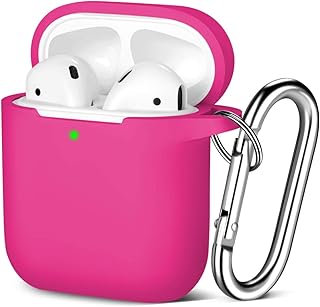 Maledan AirPods Hülle Silikon AirPods Case Kompatibel mit Apple Airpods 2 & 1 Generation, kompletter Schutz AirPods Schutzhülle (Front LED Sichtbar) (Kabelloses Laden) mit karabiner, Nachtglühen Rosa