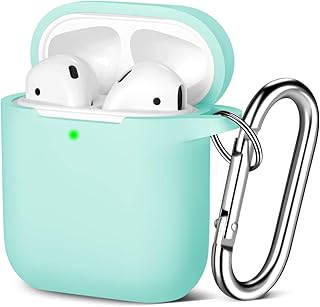 Maledan AirPods Hülle Silikon AirPods Case Kompatibel mit Apple Airpods 2 & 1 Generation, kompletter Schutz AirPods Schutzhülle (Front LED Sichtbar) (Kabelloses Laden) mit karabiner, Minzgrün