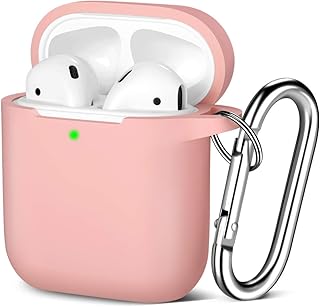 Maledan AirPods Hülle Silikon AirPods Case Kompatibel mit Apple Airpods 2 & 1 Generation, kompletter Schutz AirPods Schutzhülle (Front LED Sichtbar) (Kabelloses Laden) mit karabiner, Hell Rosa