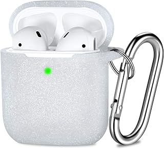 Maledan AirPods Hülle Silikon AirPods Case Kompatibel mit Apple Airpods 2 & 1 Generation, kompletter Schutz AirPods Schutzhülle (Front LED Sichtbar) (Kabelloses Laden) mit karabiner, Glitzer Splitter