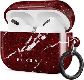 Burga AirPods Hardcase, Kompatibel mit Dem Ladecase für Apple AirPods PRO 2019, Iconic Rubin Rot Marmor Muster Ruby Red Marble, Schutzhülle aus Hartplastik
