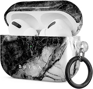 Burga AirPods Hardcase, Kompatibel mit Dem Ladecase für Apple AirPods PRO 2019, Schwarz Marmor Muster Black Marble, Schutzhülle aus Hartplastik