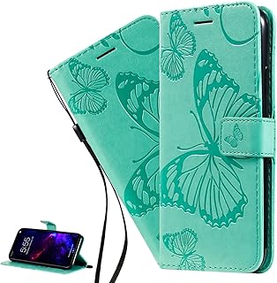 LEMAXELERS Galaxy A51 Hülle,Für Samsung Galaxy A51 Handyhülle Schmetterling Prägung Mädchen Flip Case PU Leder Cover Magnet Schutzhülle Ständer Handytasche für Samsung Galaxy A51,KT Die Green