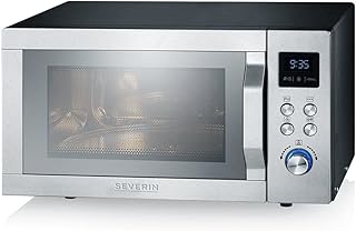 SEVERIN Mikrowelle mit Grill und Ultra-Heißluftfunktion 3-in-1, Mikrowellengerät zum Auftauen, Garen und Erhitzen, Mikrowelle mit Drehteller, silber/ Edelstahl, MW 7754