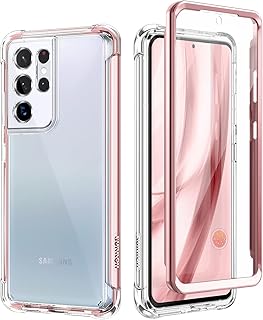 SURITCH für Samsung S21 Ultra Hülle Schutzhülle 360° Stoßfest Transparent Front Und Rückenschutz Handyhülle mit Kameraschutz TPU Roségold Bumper Eingebautem Displayschutz für Samsung Galaxy S21 Ultra