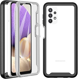 CENHUFO Für Samsung Galaxy A32 5G Hülle, Stoßfest Schutzhülle 360 Grad Rundumschutz Cover mit Eingebautem Displayschutz Robust Bumper Outdoor Case Transparent Handyhülle Für Samsung A32 5G - Schwarz
