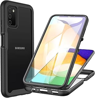 CENHUFO Für Samsung Galaxy A03S Hülle, Stoßfest Schutzhülle 360 Grad Rundumschutz Cover mit Eingebautem Displayschutz Robust Bumper Outdoor Case Transparent Handyhülle Für Samsung A03S (6,5") Schwarz