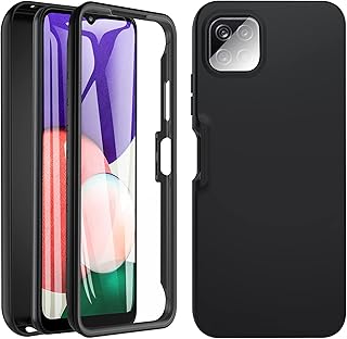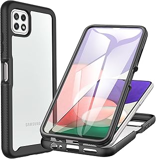CENHUFO Für Samsung Galaxy A22 5G Hülle, Stoßfest Schutzhülle 360 Grad Rundumschutz Cover mit Eingebautem Displayschutz Robust Bumper Outdoor Case Transparent Handyhülle Für Samsung A22 5G - Schwarz