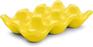 Flexzion 6 Eier Keramik Eierhalter, 6er Porzellan Eierablage Aufbewahrungsbox, Rutschfester Eierteller Eierplatte Eierbehälter Eierträger Eierbox für Zuhause Küche Kühlschrank Restaurant (Gelb)
