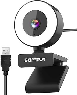 Samzuy 1080p Webcam mit Mikrofon für PC, Plug&Play USB Facecam, Streaming Web Cam mit Ringlicht für Videokonferenzen/Zoom/Online-Kurse, Kamera mit Licht Kompatibel mit Windows, Mac Und Android