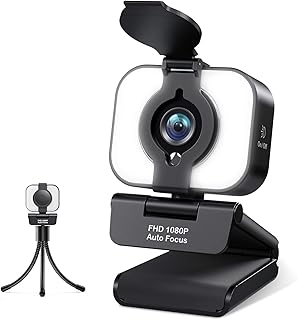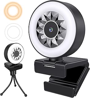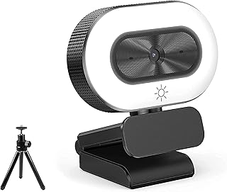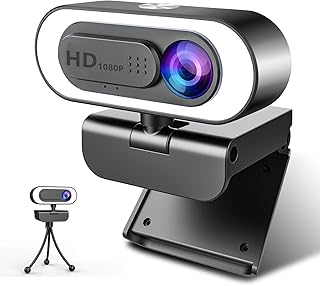 1080P Webcam mit Mikrofon,Full HD Web Camera für PC,USB Camera PC-Kamera mit Ringlicht,Abdeckung und Stativ, Streaming Cam für Video Chat und Aufnahme, Zoom,Skype,Laptop, Windows, Mac, Android
