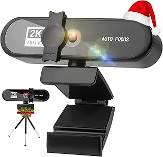 Aode Webcam 2K HD mit Mikrofon,Web Camera Facecam Live-Streaming Webcams mit Abdeckung,Stativ,360° Drehbar,USB Kamera für PC,Mac,Videochat-Aufnahme,Konferenz,Webcam für Zoom,Skype,Teams,YouTube