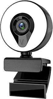 VCVS HD 1080P Webcam mit Ringlicht & Mikrofon, Full HD Kamera Facecam Live-Streaming Webcams, Stativ, 360° Drehung, USB Webcam für PC, Mac, Laptop, Skype, YouTube, Videoanrufe (Weiß/Warmes Licht)