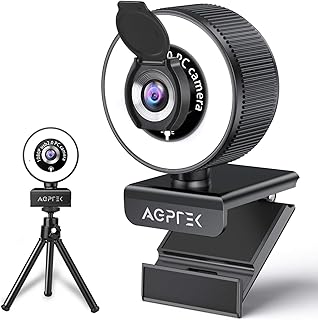 AGPTEK Webcam 1080P Full HD, Stereo Mikrofon, 360° Drehung,95° Blickfeld, Ringlicht, Abdeckung, Stativ, PC USB Kamera,Facecam für Streaming, Video-Chat, Online-Kurse,Spiel,Kompatibel mit Windows, Mac