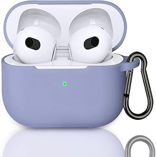 MATEPROX Hülle Kompatibel mit AirPods 3 Schutzhülle mit Karabiner(Unterstützt kabelloses Laden), Stoßfest Silikonhülle for AirPods 3 Hülle Kompatibel mit AirPods 3rd Generation 2021-Lavendel Lila